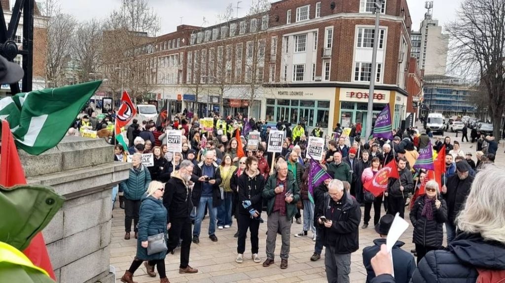 A couple months later on the 18th of march 2023 they tried again. By this point Alek Yerbury (now dubbed Poundshop Hitler by the trade unionists) had split from PA and was organising under the Yorkshire Patriots banner, though still organising through the same online spaces.